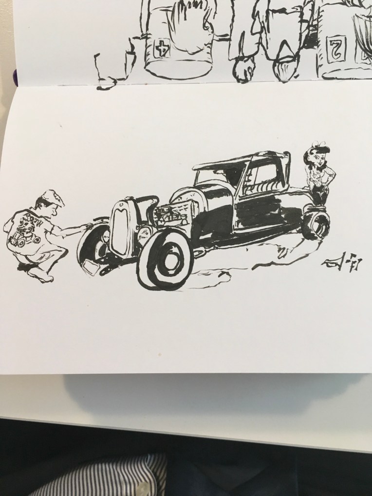 I don’t usually use pencil first. I just “go for it” with ink. Mistakes I make along the way, I live with. Although I sometimes regret my drawings of people if I make an error and can’t fix….