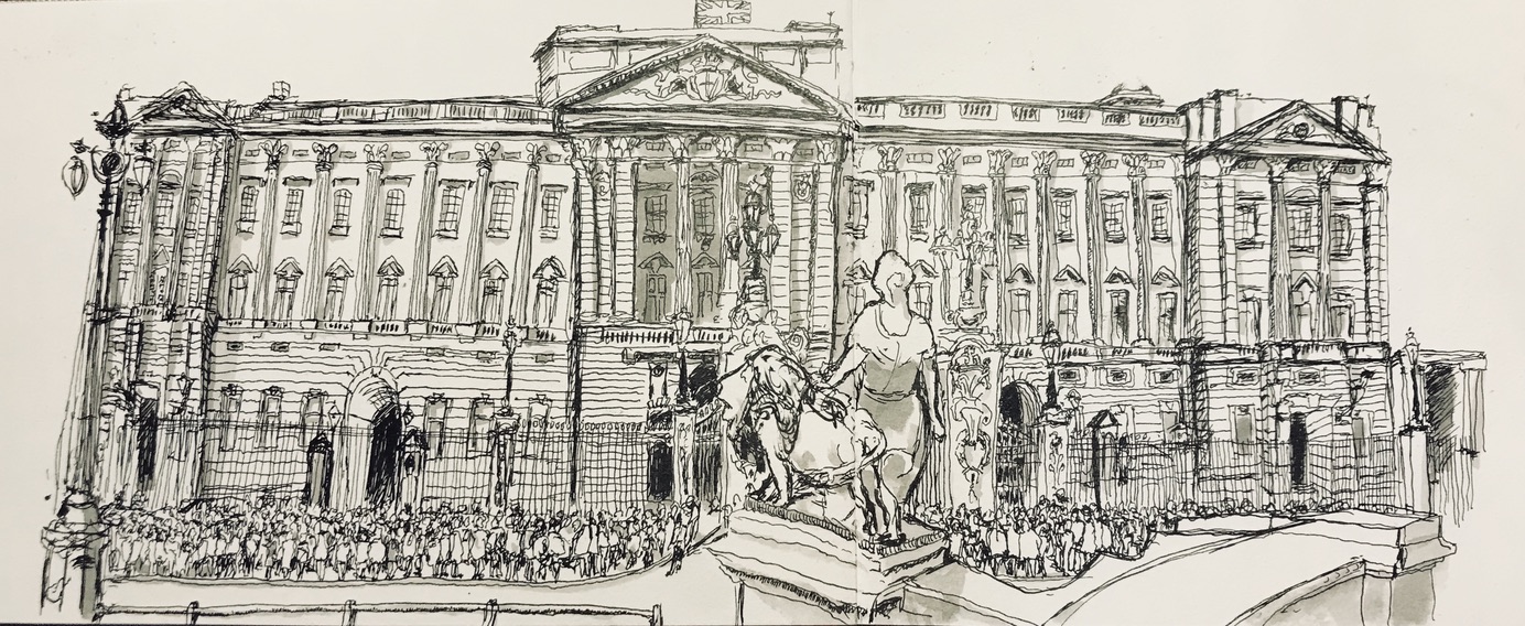 Sketching live can be exciting, challenging and fun. At live performances like Daniel O’Donnell. It doesn’t look like him but Dean Z looks closer and he signed it for me. And the last drawing Buckingham Palace with lots of people looking as doing.