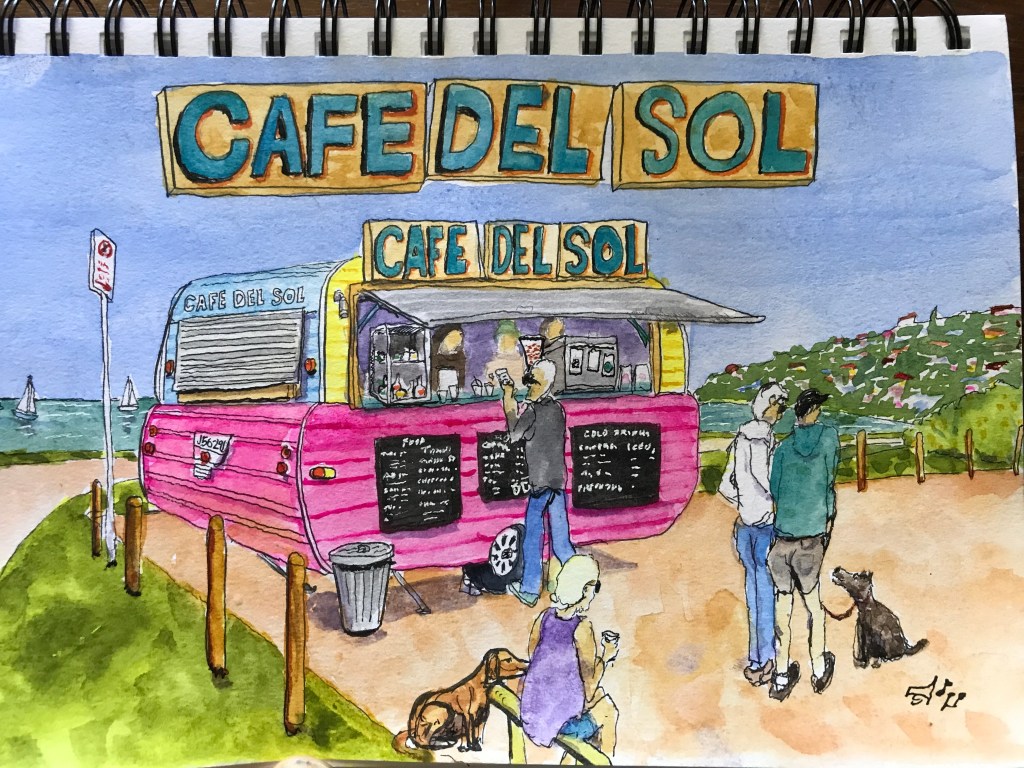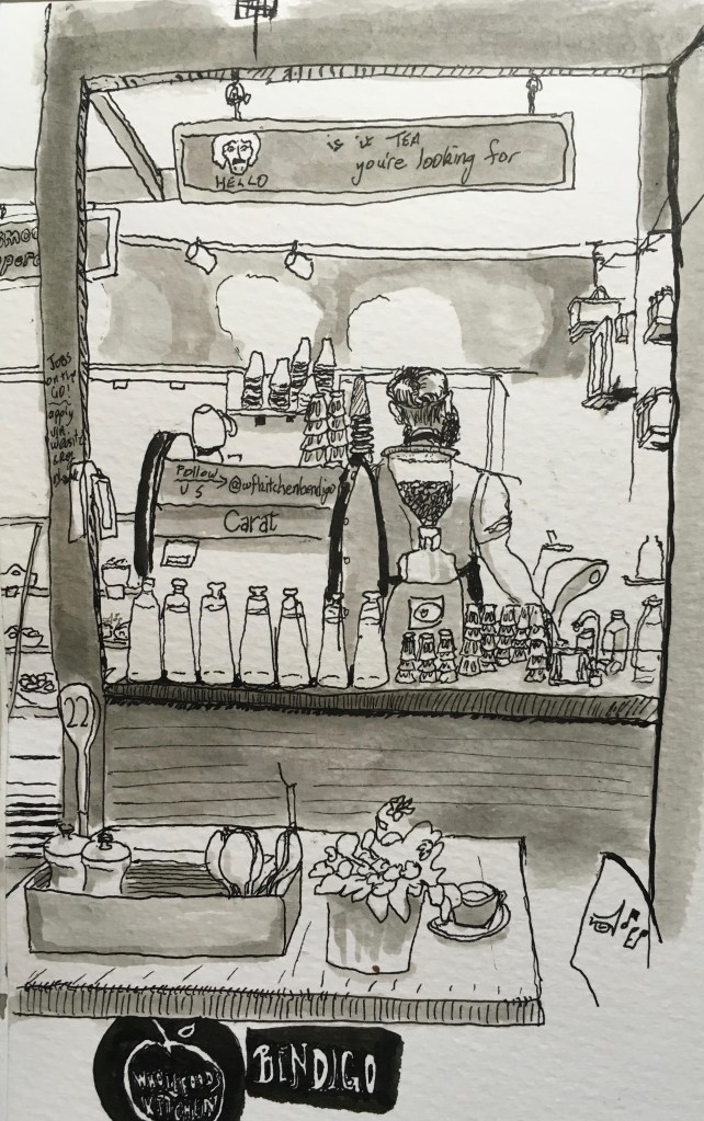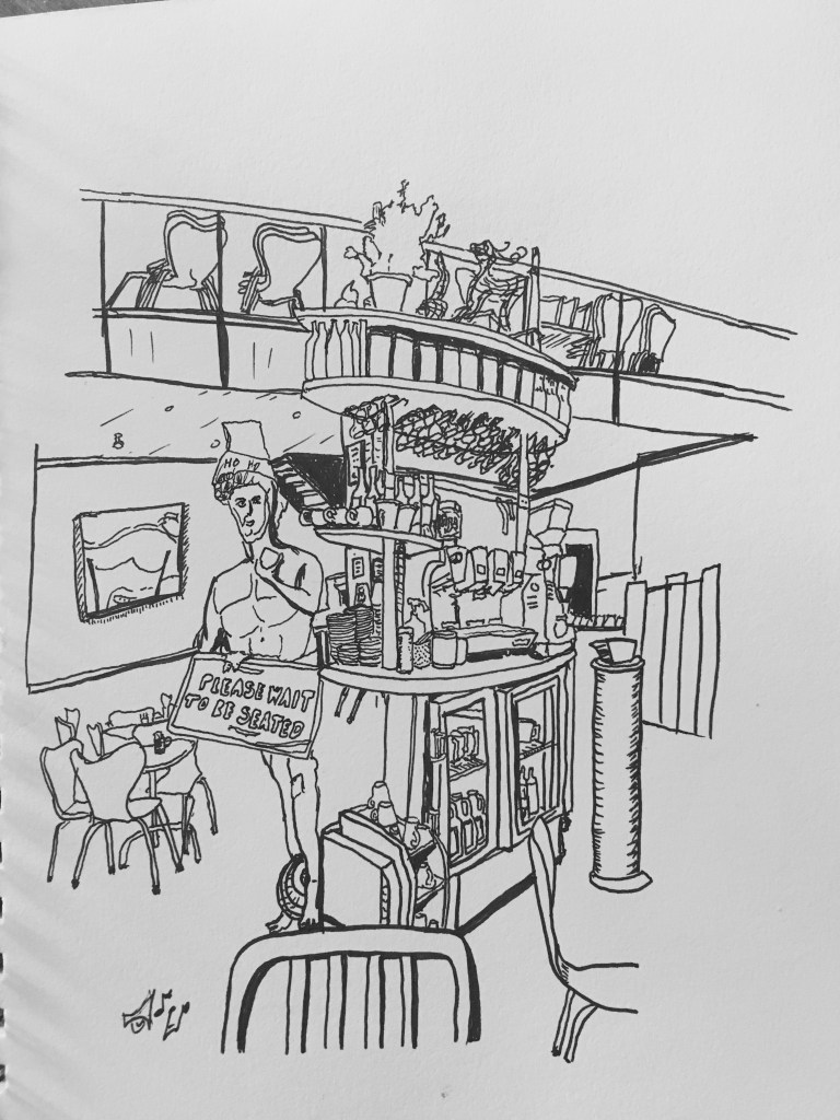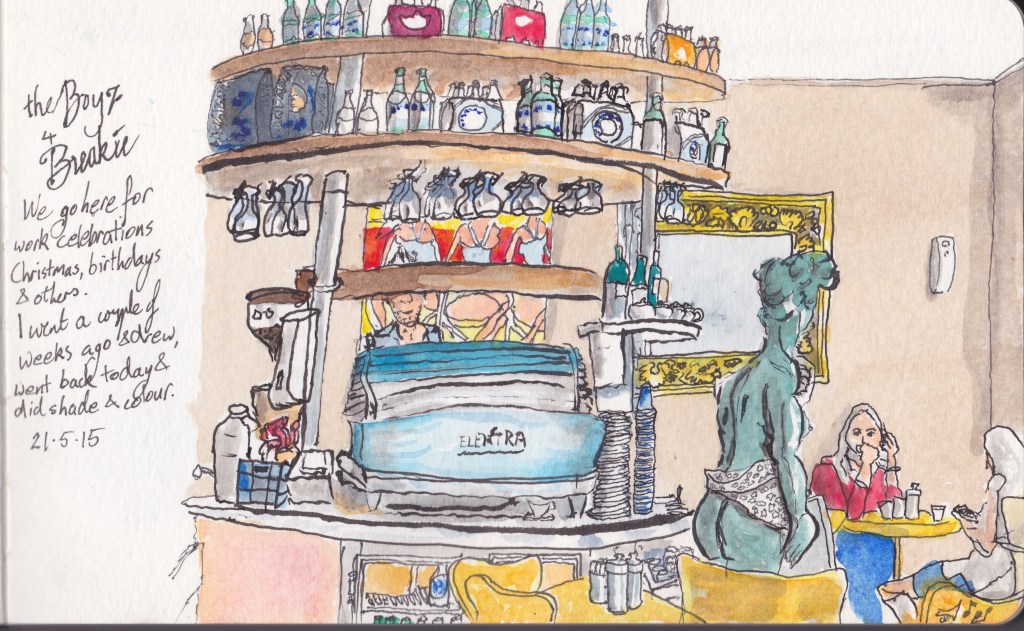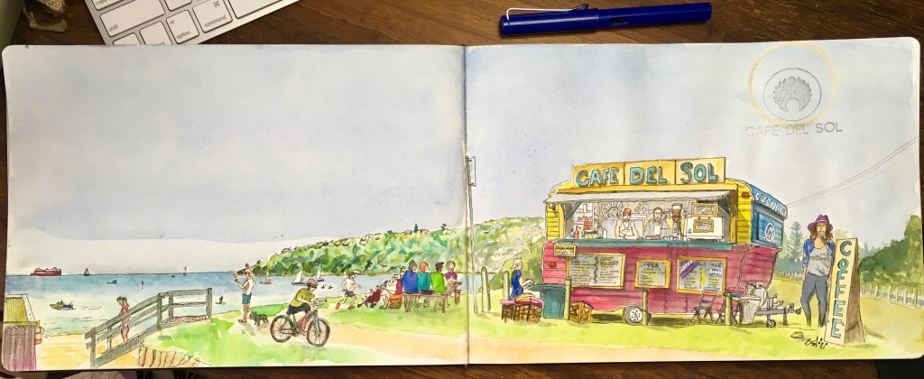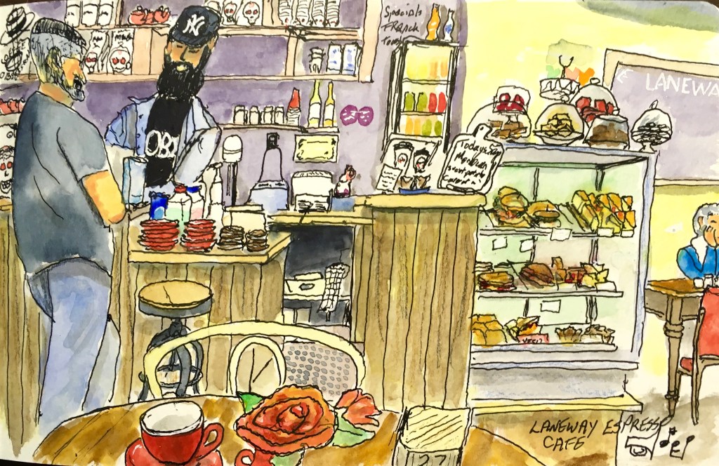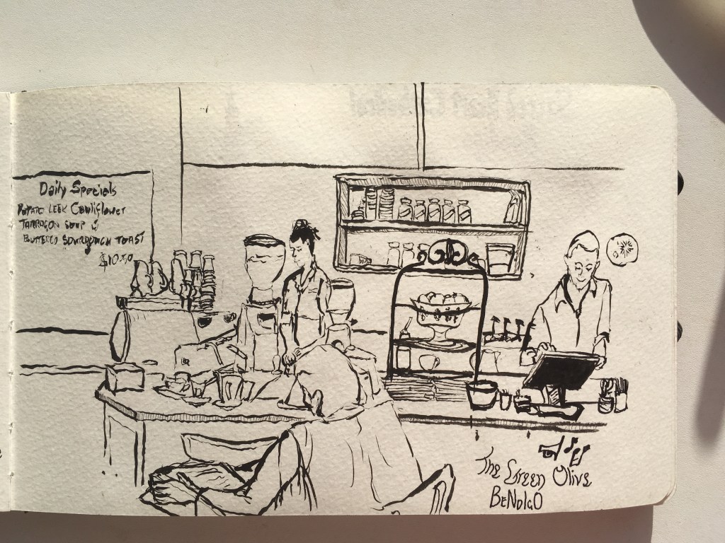 Melbourne is said to have a coffee culture. Part of being an urban sketcher is always having a pen and pad handy. so waiting for coffee goes hand in hand with chances to sketch. cafe Del Sol is very close to where we live and Provincia is a quick walk hence they appear a few times.