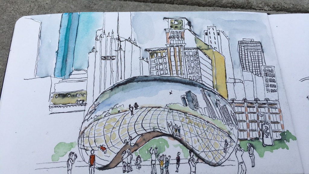 ChicagoMy rear side sketching the beanDrew the one on the left in the early mornings, where I saw how many office workers carry yesterdays left overs (takeouts) for lunch
